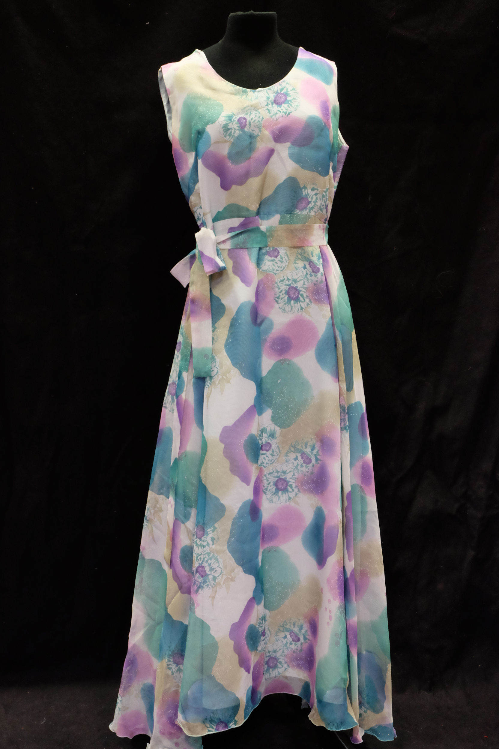 ROBE LONGUE Verte et fleurs mauve